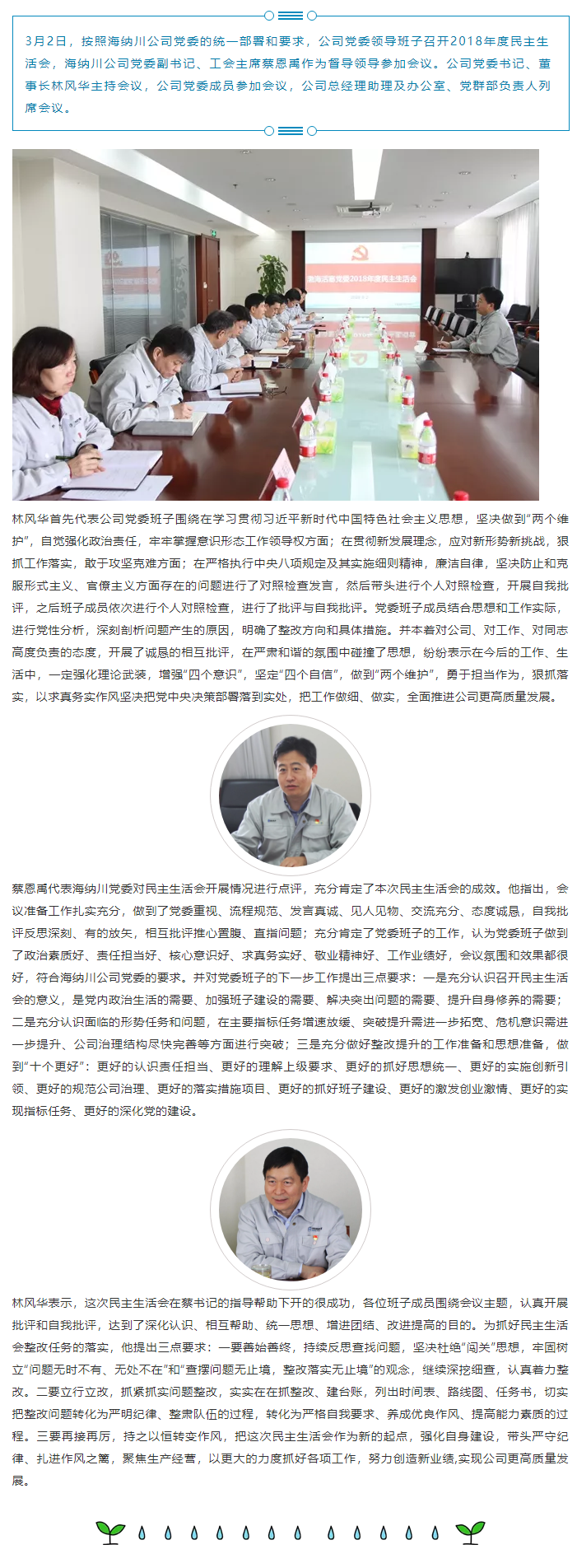 公司党委领导班子召开2018年度民主生活会