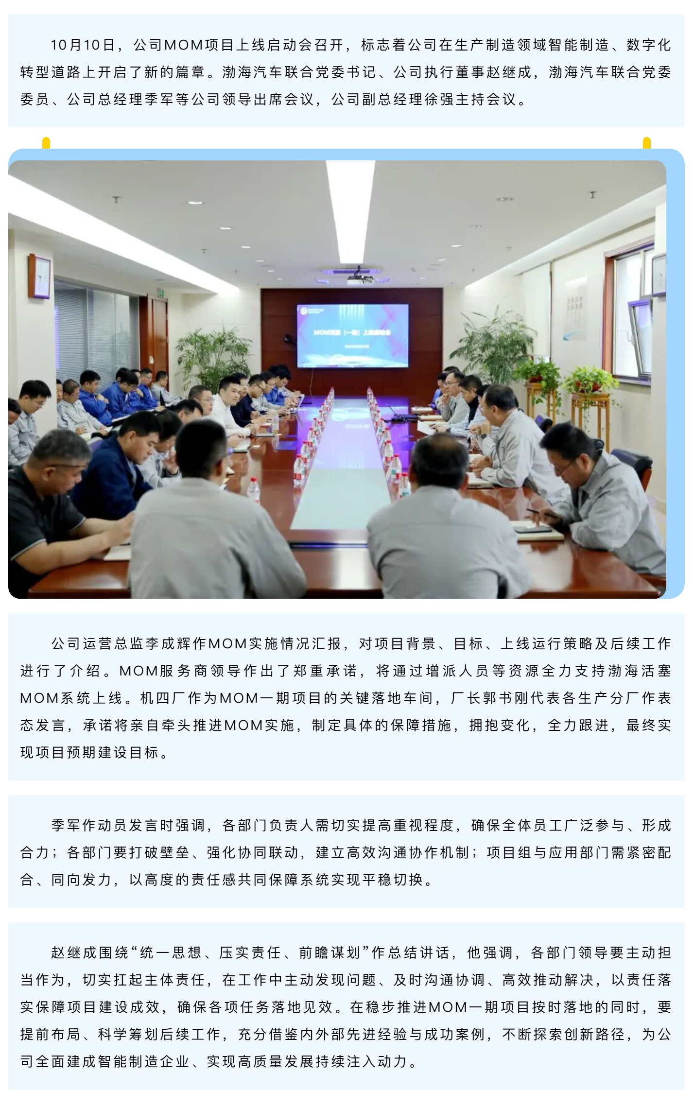智能制造启新篇 公司MOM项目上线启动会顺利举行